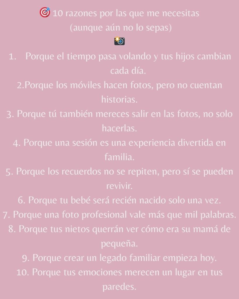 Pero también sé que un pequeño acto de consciencia —como reservar una sesión de fotos— puede convertirse en un regalo eterno para ti y los tuyos.